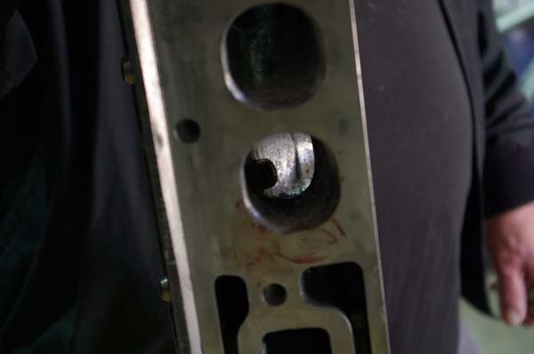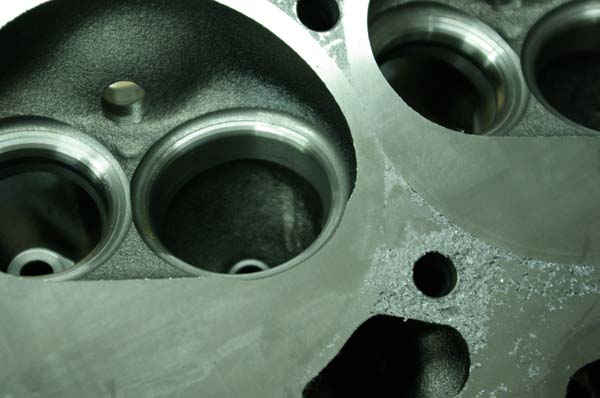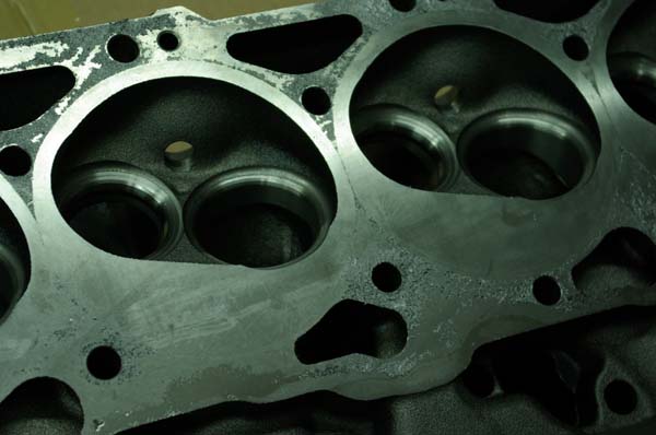 A few days later the engine arrived and the Puke Truck brought the new piece to Razorback Rides. The heads were taken off and it was easy to see why Norm was advised to have a little work done prior to the installation of his new engine. As delivered there were large steps where the port transitioned into the throat area. Another issue that Norm was told to expect was razor sharp edges in the chambers. These sharp edges can contribute to detonation issues.