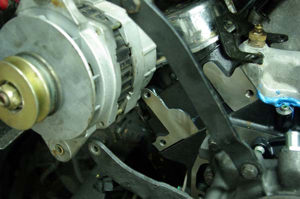Inspection of the fan belt alignment made it clear that the accessory brackets need a little tweaking. The situation became even more fun when it was discovered that the old heads had 3/8 holes for the accessories and the new heads had 7/16 holes. Norm offered to do a parts run so that Razorback Rides could stay focused (and productive).