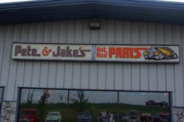 WHERES NORM? ..PETE and JAKES September 8, 2007 Any excuse is a good excuse to visit Pete and Jakes but when you combine a hot rod show with a parts run it pushes the fun-o-meter past the redline. Some prime real estate was reserved for Norm. He set up in front of the main building.