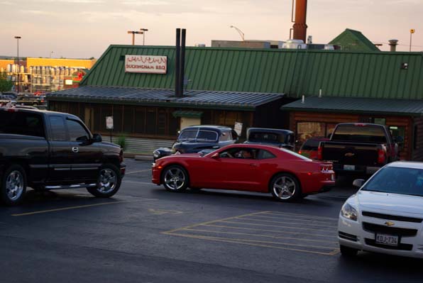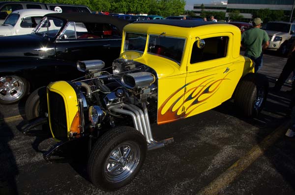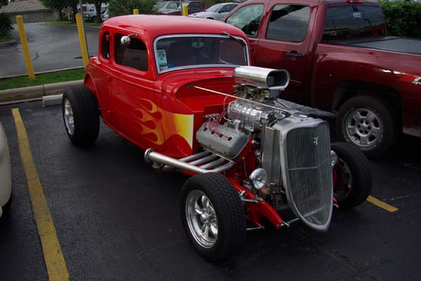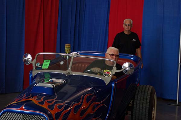 Does Norm look so happy because hes surrounded by Hot Rods? Looks like hes made his way over to a nearby restaurant, a restaurant with a bar perhaps?