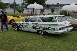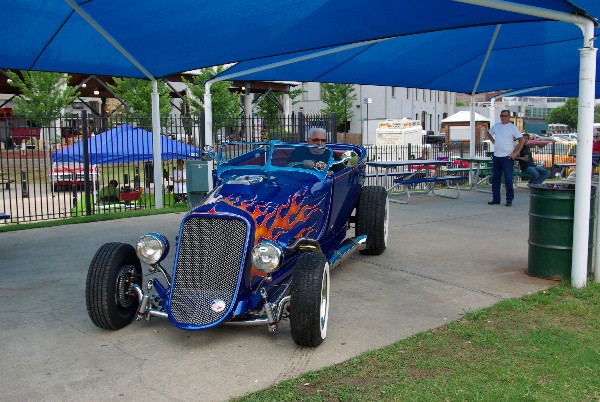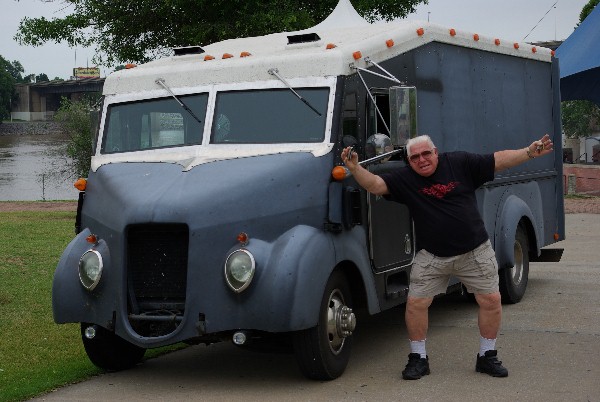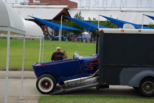 Wheres Norm? Norm was in Little Rock for the climax of the Hot Rod Power Tour on June 8th and 9th. Norm was invited by the Little Rock Chamber of Commerce to display Kookie II. The weather was a bit warm. By noon on Saturday we thought that we saw aluminum melting (but steel and iron held up to the heat). Hot Rods were out numbered by muscle cars but the pre48 crowd still made a good showing. Norm set up early at the River Market, so Kookie II did not participate in the parade from the fair grounds. Parked under a canopy was not a bad alternative. Norms flattop does not provide great UV protection in scorching weather. Having participated in events at this location Norm had good advice for those planning to attend, Arrive hungry! The enclosed Market offered a great variety of dinning delights. Early morning gyros kept energy levels going till dinner. Fresh funnel cake topped off the days calorie consumption.