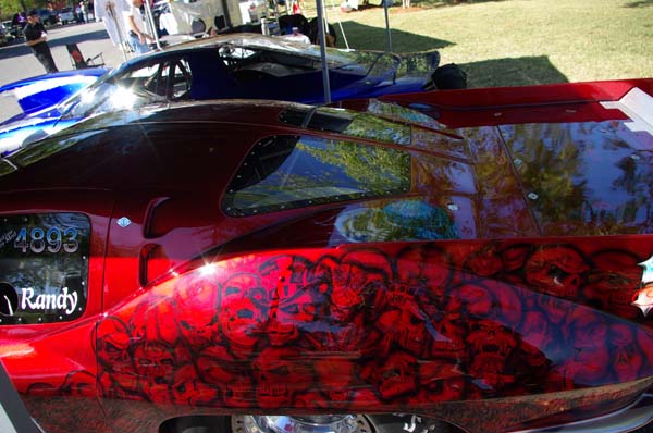 was no Cheetos Cheetah on this Camaros spoiler when it arrived at the show. On site striping and artwork was available during